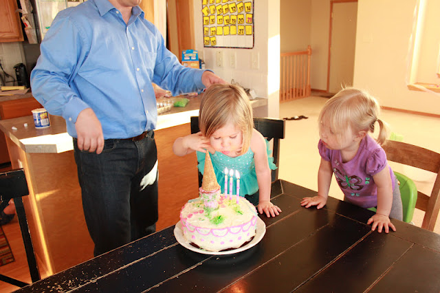 I gotta say... the pictures I liked the most were of Paige on the counter while Brandon did her cake. He gets five super-daddy points from me! What is it that makes a daddy doing something like that for his daughter the sweetest, sweetest, thing?!? I loved reading about it, and seeing it.